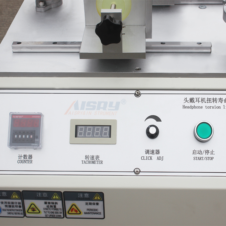 頭戴耳機扭轉疲勞試驗機操作方便,試驗次數(shù)、速度、距離可調。通過機器模擬,可快速得出產(chǎn)品的質量,為研發(fā)和生產(chǎn)提供有力的實驗數(shù)據(jù),從而為市場提供質量更高的產(chǎn)品。
